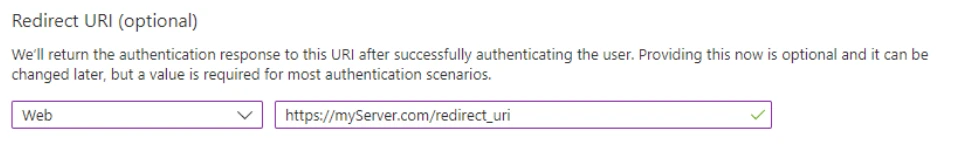 - Set redirect URI settings to “Web”, add the Redirect URI